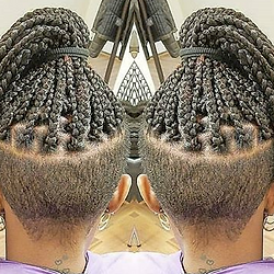 Medium box braids with sides and back shaved, 3 hours, mid back length, 3 packs of Xpression hair